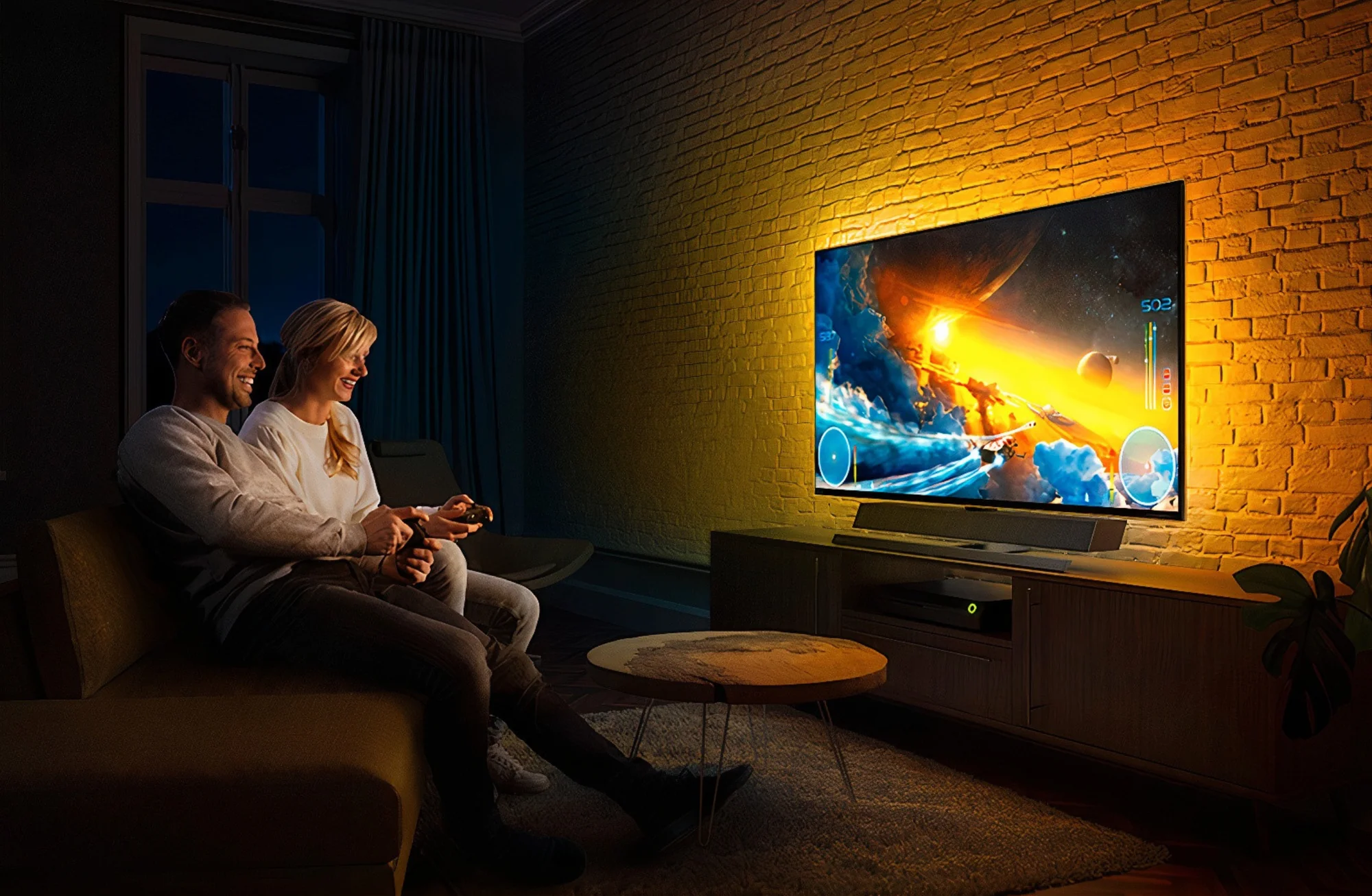 Ignite your senses as vibrant, synchronized colors radiate beyond the screen, immersing you in a captivating atmosphere that amplifies every moment of your favorite movies, shows, and games.