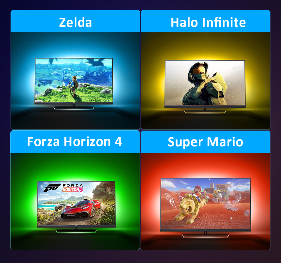 Simply connect the LumaLink™ to devices like Apple TV, Xbox, PlayStation, or laptop, and watch as the LED lights synchronize seamlessly with your screen's imagery.